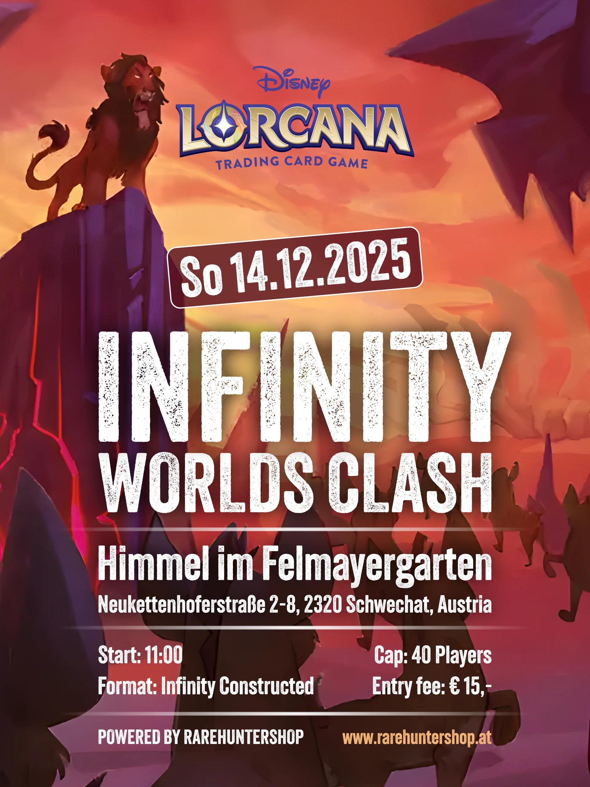 Unser erstes großes Lorcana Infinity Constructed Event, der INFINITY WORLDS CLASH, findet am 14. Dezember im Felmayergarten statt!