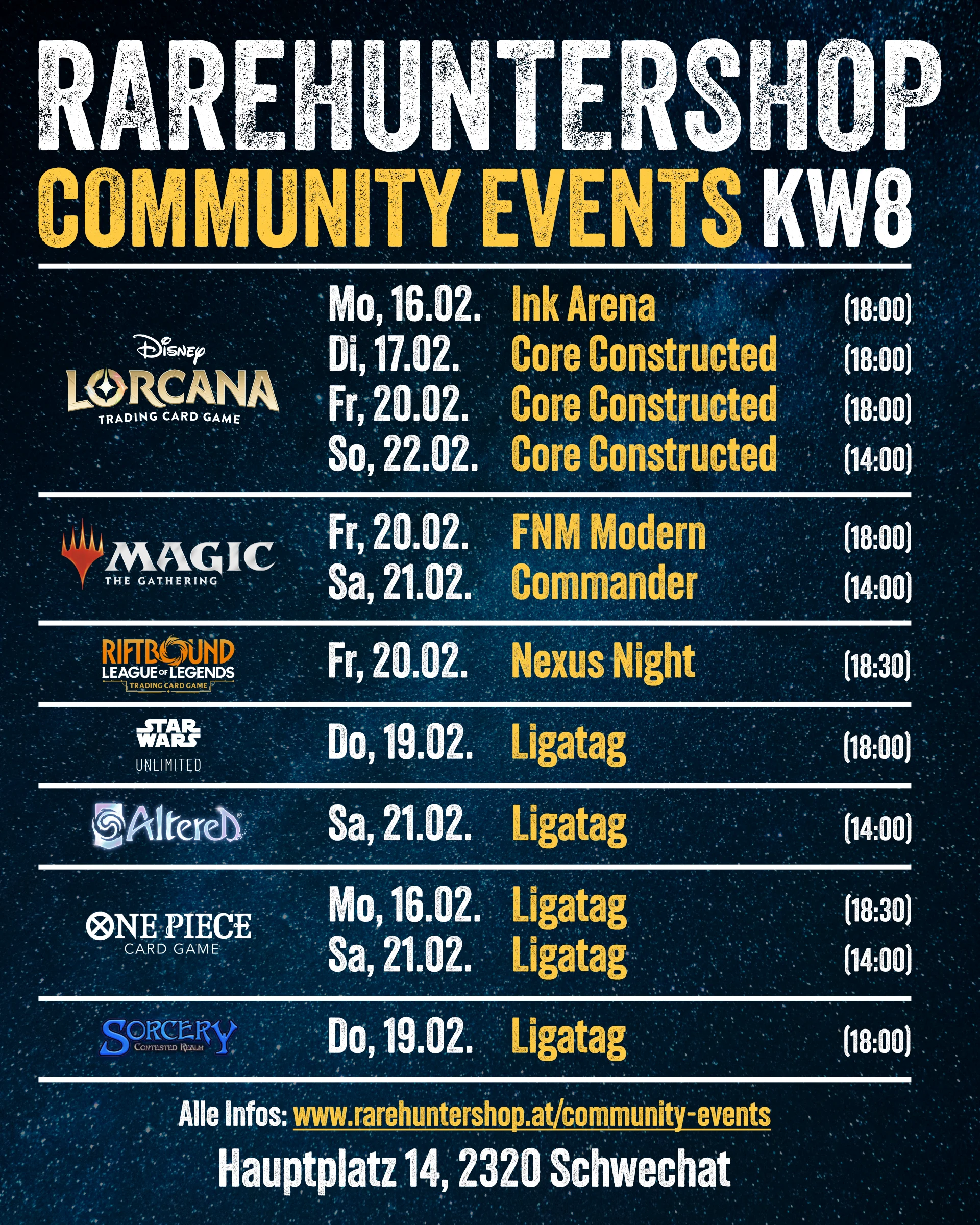 Neben unseren Highlights, der Lorcana Set Championship und dem Riftbound Summoner Skirmish, war noch jede Menge mehr los. Insgesamt fanden 12 verschiedene Events im Rahmen des TCG Weekends statt: